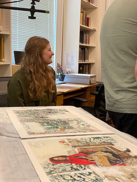 Curator Stephanie Plunkett always lets us into the Norman Rockwell archive to look at special behind-the-scenes artwork (in this case Jerry Pinkney, a rare Rockwell etching, Laura Mills, and Rose Cecil O’Neill)