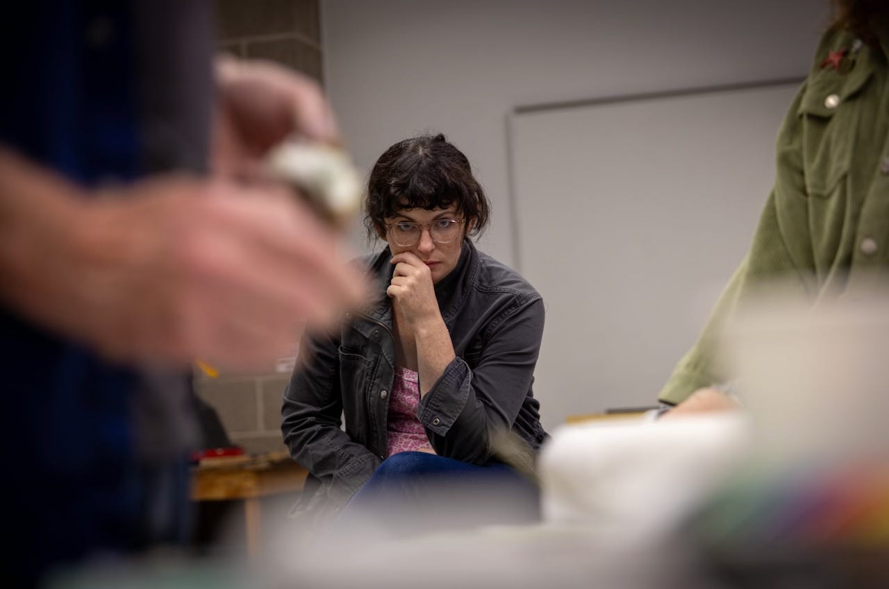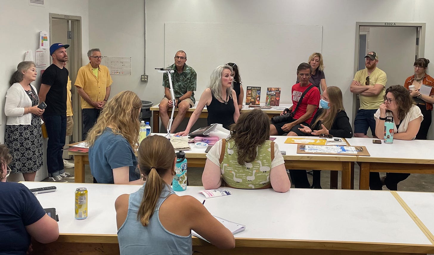 The talent in this picture alone! Lisa Cyr is giving us a demo while, amongst others, Edward Kinsella, Dale Stephanos, Abigail Platter, and Annie Cauffman look on. Other faculty in this shot include my 💖 thesis advisor 💖 Carol Schwartz, Courtney Granner, Bill Thompson, and Jackie Decker.